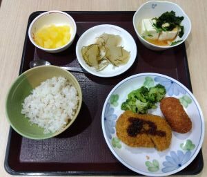 2025年10月メニュー 2025.11.7 食事レポート 2025年10月に、院内で手作りしてご提供いたしましたお食事を一部ご紹介します。 ★中秋の名月★ 米飯、さばの塩焼き、大根のそぼろ煮、コールスローサラダ、お月見まんじゅう 米飯、鶏肉の塩麹焼き、焼きそば、ごま和え、いちごゼリー 麦ごはん、コロッケ、冬瓜と昆布の煮物、豆腐サラダ、フルーツ缶(りんご) 米飯、チャプチェ、冬瓜の土佐煮、ツナサラダ、フルーツ缶(洋梨) 食事レポート 井戸ポンプ引き上げ交換工事前の記事 2025年11月メニュー次の記事