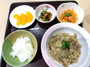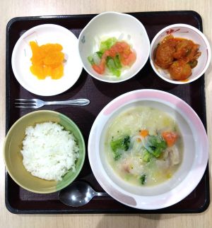 2025年11月メニュー 2025.12.1 食事レポート 2025年11月に、院内で手作りしてご提供いたしましたお食事を一部ご紹介します。 米飯、鱈のクリーム煮、肉団子のケチャップ炒め、イタリアンサラダ、フルーツ缶(みかん) 中華丼、ナムル、ドームケーキ きのこご飯、豚肉のみそ炒め(ブロッコリー・コーン付)、ちくわの磯部揚げ、ツナサラダ、水まんじゅう 米飯、卵とじ煮、スパゲッティナポリタン、お浸し、フルーツ缶(黄桃) 食事レポート 2025年10月メニュー前の記事 靴について考える次の記事