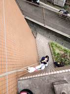 ●避難訓練:当院2階のベランダから1階のフリースペースへ緩降機※にて避難訓練を行いました。